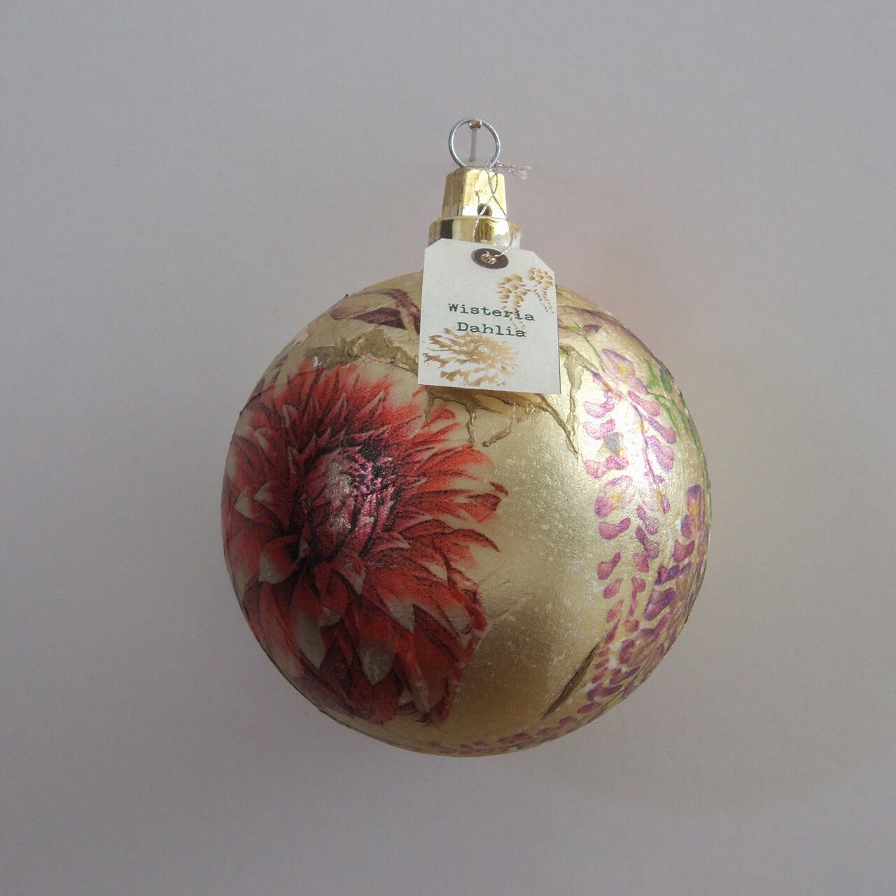 「藤とダリアと青い鳥」ボールオーナメント〈半艶タイプ〉 /